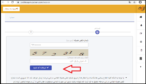 در مرحله بعد متقاضی می بایست شماره همراه و کد امنیتی را در قسمت مربوطه وارد نماید.
