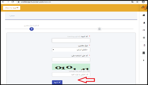فرد پس از دریافت کد تایید می بایست آن را در جای مربوطه وارد نماید و گزینه ورود انتخاب نماید.