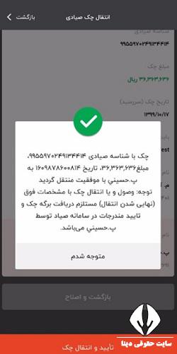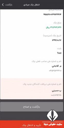 دینا / تجاری / اسناد تجاری / انتقال چک در سامانه صیاد و پیچک