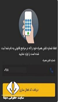 در این قسمت، یک کد فعال سازی به شماره تلفن همراه متقاضی ارسال می شود که می بایست آن را در کادر مربوطه وارد نمود.