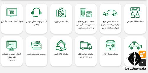 در این سامانه، همچون سامانه پرداخت قبض مالیات، امکانات آنلاین بسیاری، از جمله پرداخت عوارض شهرداری، در جهت تسریع و تسهیل پرداختهای شهری و قبوض، امکان خرید بلیت مترو و شارژ کارت بلیت مترو و اتوبوس، وجود دارد. خدمات ویژه شهری، در حوزه حمل و نقل، پارک حاشیهای و ... از دیگر امکانات این سامانه می باشند. همچنین، می توانید از سامانه سامان بازار، سامانه حمل و نقل بار و کالا، سامانه ثبت نام موسسات کرایه اتوموبیل و فروشگاه و خدمات آنلاین و نقشه تهران نیز در این سایت بهره مند شد.
