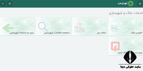 در این قسمت، فرد باید وارد صفحه خدمات اپلیکیشن تهران من شود. برای پرداخت عوارض شهرداری، اعم از نوسازی و عمران شهری، عوارض مدیریت پسماند واحدهای مسکونی و غیرمسکونی و عوارض کسب و پیشه، شخص باید بر روی گزینه ملک من، کلیک کند.