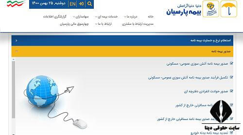 برای ورود به سایت بیمه پارسیان کلیک کنید.