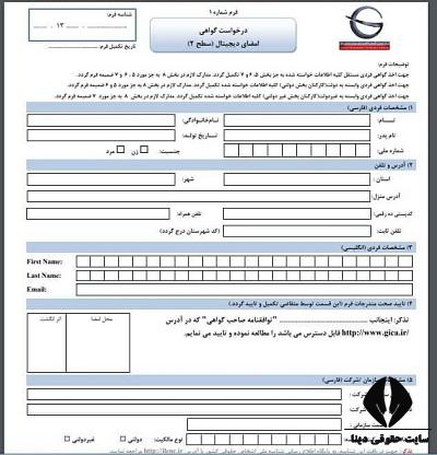 نمونه فرم گواهی امضای الکترونیکی