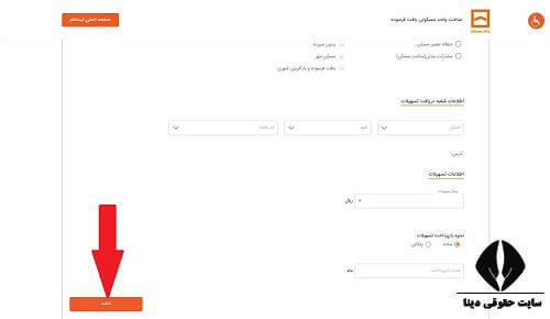 در این صفحه، می بایست در بخش اطلاعات تسهیلات، قالب تسهیلات را زوجین انتخاب نموده و سپس، نوع و محل تسهیلات را از بین گزینه های موجود، انتخاب نمایید.
