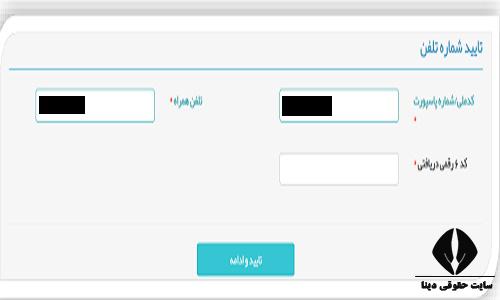 در این بخش، سامانه به شماره همراه ثبت شده یک کد 6 رقمی ارسال می کند که لازم است، شخص آن را در کادر مربوطه وارد کرده و بر روی ثبت و ادامه کلیک نماید.