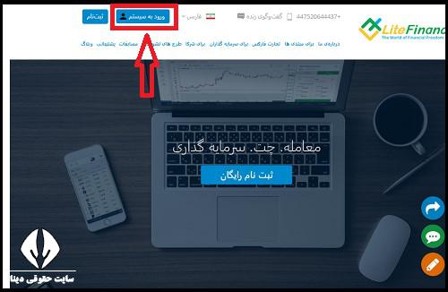 مخاطب جهت ورود به لایت فارکس بدون فیلترشکن ابتدا نشانی نام برده را در مرورگر اینترنتی دستگاه خود وارد نموده و سپس به صفحه اول این سایت وارد خواهد شد. فرد بعد از آن بر روی دکمه ورود به سیستم مطابق تصویر زیر، نشان داده شده در کارد قرمز رنگ کلیک نموده تا به صفحه بعد جهت انجام فرآیند ورود منتقل شود.