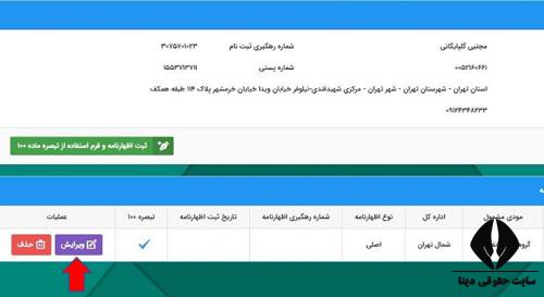 در این صفحه، شخص اطلاعات اظهارنامه را مشاهده کرده و باید با کلیک بر روی کلید ویرایش، جزییات اظهارنامه را مشاهده نماید.