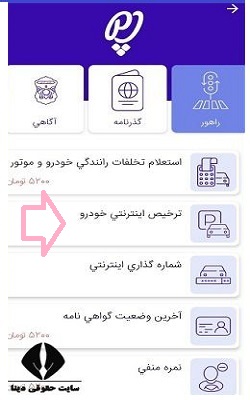 سپس باید، گزینه ترخیص اینترنتی خودرو را انتخاب نماید.