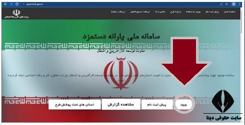 ورود به سامانه دریافت یارانه دستمزد pyd.mcls.gov.ir، مبحثی است که در این تیتر از مقاله حقوقی دینا، مورد بررسی، قرار خواهد گرفت. برای ورود به سایت یارانه دستمزد، فرد باید، آدرس pyd.mcls.gov.ir را جستجو نموده و پس از هدایت شدن به صفحه ای مانند صفحه زیر، برروی گزینه "ورود"، کلیک کند.