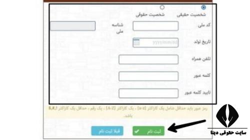 در مرحله بعدی افراد باید شخصیت حقیقی یا حقوقی خود را مشخص کرده و سپس فرم را با اطلاعات خواسته شده تکمیل نمایند.