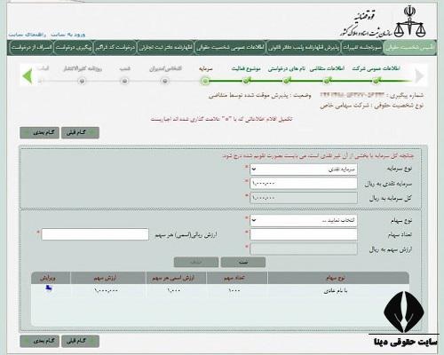 پس از انتخاب موضوع فعالیت، لازم است که نوع سرمایه، سهام شرکت و مبلغ آن معین گردد.