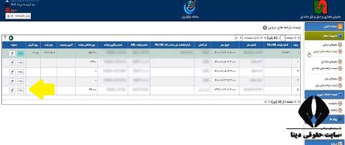 در این گام، لیست بارنامه های فرد، به وی، نمایش داده می شود و فرد باید، از فیلد عملیات، برروی گزینه FHBL بارنامه مد نظر خود، کلیک کند.