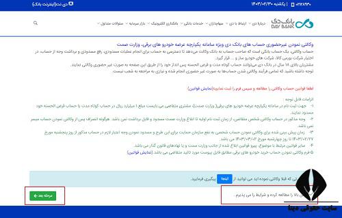 برای ورود به این سامانه کافی است شخص در مرورگر خود، آدرس سایت به نشانی day24.ir/vekalati را جستجو کرده تا وارد سایت مورد نظر شود. در این مرحله لازم است شخص بر روی گزینه شرایط بالا را مطالعه کرده و شرایط را می پذیرم علامت زده و بر روی مرحله بعد کلیک کند.