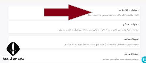 در این مرحله، فرد مجددا، به صفحه اصلی سامانه ثبت نام ودیعه مسکن مستاجران، هدایت خواهد شد و باید، برروی گزینه "وضعیت درخواست ها"، کلیک کند.
