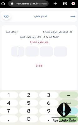 در این قسمت یک کد احراز هویت برای متقاضی فرستاده می شود که باید در محل مشخص شده درج شود.