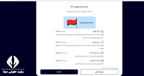 در این مرحله، فرد می تواند پوشش های این بسته بیمه ای را مشاهده کند و پس از مطالعه آن ها، باید به مرحله بعدی برود.