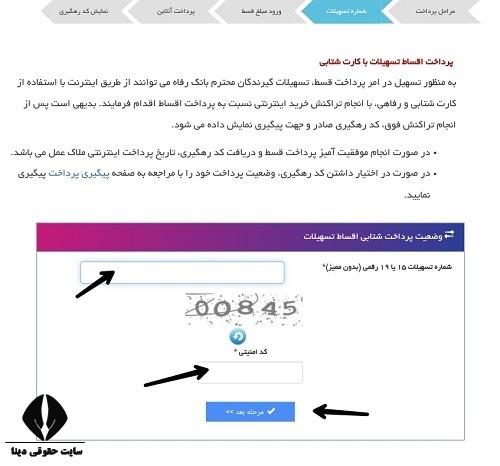 متقاضیان ابتدا باید وارد مرورگر شده و سپس نشانی gsh.rb24.ir را جستجو کنند. در ادامه صفحه پرداخت نمایش داده شده و می توان شماره تسهیلات و کد امنیتی را در آن تایپ نمود. پس از کلیک بر روی گزینه مرحله بعد، امکان طی کردن باقی مراحل و پرداخت اقساط فراهم خواهد شد.