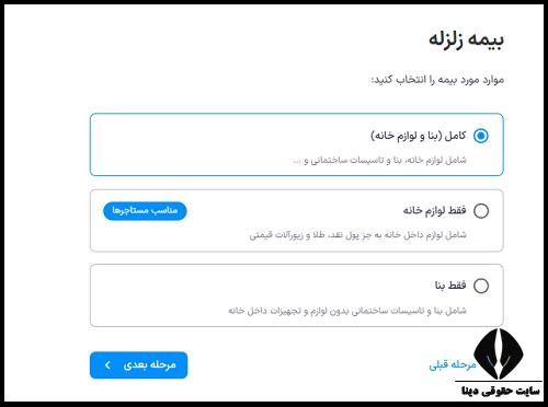 در این مرحله، افراد می توانند انواع بیمه های زلزله را مطالعه کرده و طرحی را که متناسب با شرایط خود می بینند، انتخاب کنند. گزینه مربوط به مستاجر ها نیز در این بخش فعال است.